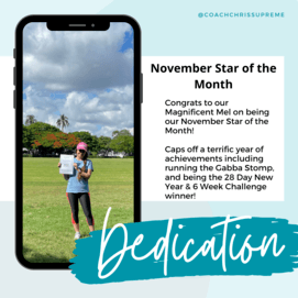 Coach Chris has developed a fun, friendly and community filled program that anyone can get involved in. His sessions got me back to regular exercise which changed my mood, my body shape and my mindset. He has such a personalised approach, making such an effort to work with each individual to achieve what is important to them.